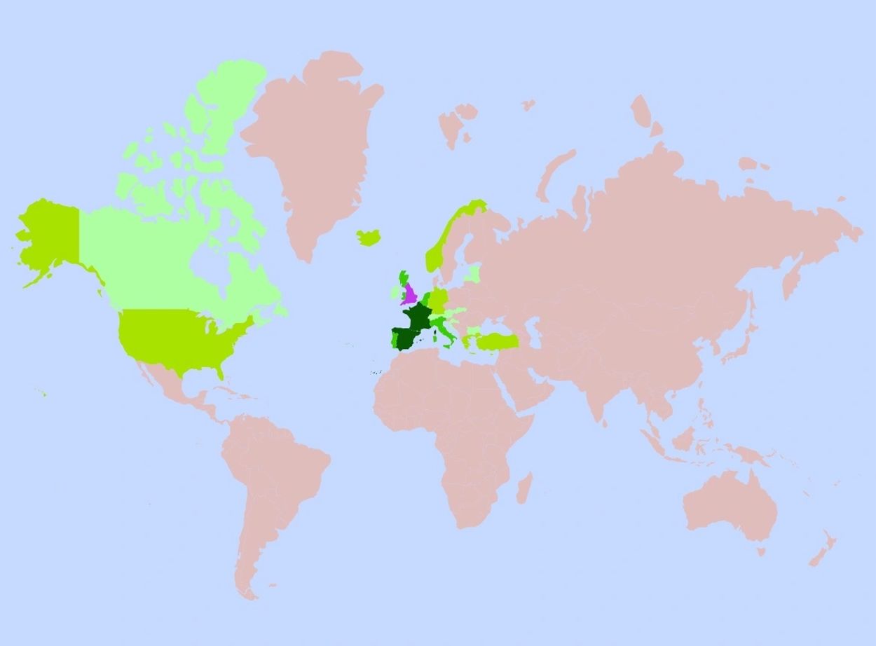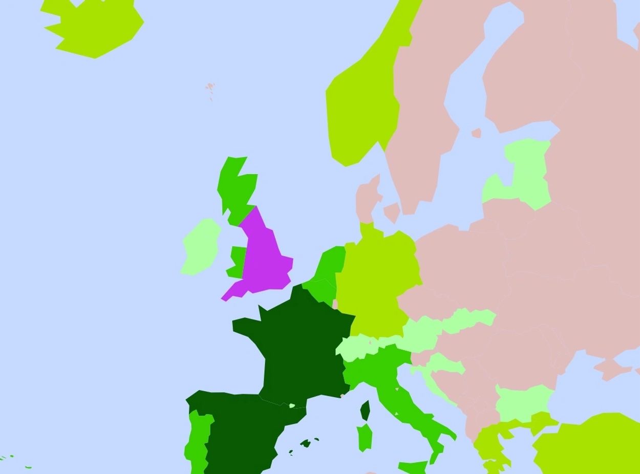 A zoomed in map of Europe